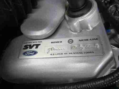 This car comes equipped with the following: 465 HP Supercharged V8, 6 speed manual transmission, Power Drivers Seat, Mach 460 Audio System, 6 Disc CD Player, Traction Control, Power Convertible Top, Chrome Wheels, and Mystic Chrome leather interior with the original Mystic Chrome seats and steering wheel. Also comes with Full Documentation including original bill of sale, window sticker, SVT Certificate #328, MCA 1st place judging sheet from the 2012 MCA Nationals in Sands Point NY, Original Owners manual and paperwork.