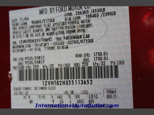 2005 Ford Mustang GT Deluxe --IMMACULATE--ONE OWNER--CLEAN HISTORY REPORT--RED LEATHER INTERIOR--VERY CLEAN --A MUST SEE AND DRIVE--A MUST SEE AND DRIVE--MOST OF OUR VEHICLES ARE HIGH QUALITY, HAND PICKED, ONE OWNER IN A LIKE NEW CONDITION WITH A CLEAN CAR FAX. ALL ARE FULLY INSPECTED, SERVICED AND RECONDITIONED, THOSE THAT DO NOT MEET OUR MECHANICAL CRITERIA ARE NOT OFFERED FOR SALE. MOST OF OUR VEHICLES ARE COVERED WITH THE MANUFACTURER WARRANTY OR A 3 MONTHS/4500 MILE WARRANTY. FINANCING IS AVAILABLE AND TRADES ARE ALWAYS WELCOMED. FOR SIMILAR GREAT DEALS PLEASE VISIT OUR WEBSITE http://www.InternationalAutoOutlet.com At International Auto Outlet, we take pride in maintaining a large selection of fully reconditioned, inspected, certified vehicles. With over 200 quality certified cars, vans, and trucks from local dealer trades, overstocked inventory, off-lease manufacturer auctions, bank repossessions & open auctions, we have the perfect vehicle for you- and your budget. Call, email or visit our website today.