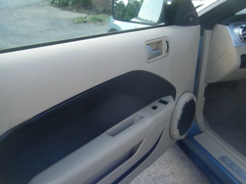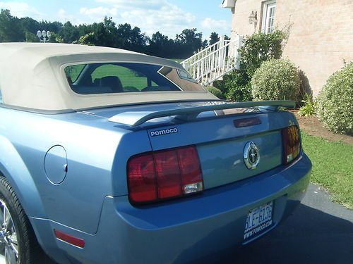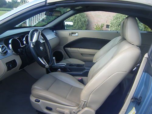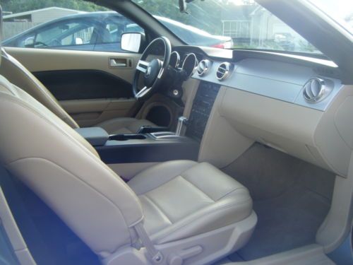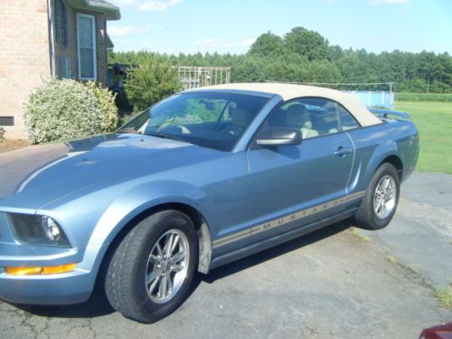Absolutely beautiful 2005 mustang convertible. Light blue with beige leather interior and rag top. Premium package with 6 in dash CD changer awesome sound! This mustang is a V6 with plenty of spunk without being a fuel hog. I get about 24 miles per gallon. The interior is in perfect conditon , no tears on the leather. The top is in great shape with out any leaks or tears or repairs. About 75% left on tires.The drivers seat is power with adjustable lumbar and seat height . This car will turn heads!! minor imperfections are some stone dings on hood, the thermostat gauge does not work. I do have the part to fix it. The rear window defrost does not work.Maybe 3 of the radio buttons ,the black paint is peeling off. Ttile is at NFCU Payment cash in person or cashiers check made payable to NFCU and Mary Littlefield