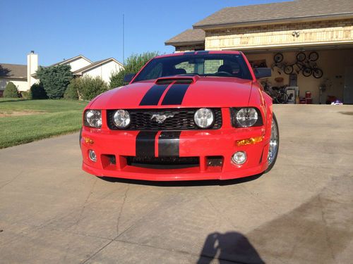 You are looking at a beautiful bright red 2006 Roush Stage 2 Mustang that has been babied and is in near perfect condition. It has the 4.6 liter V8 that is powerful and fun to drive with the 5 speed manual transmission. The two tone red/ black leather interior with Jack Roush signature stitched in the seats is very unique and eye catching. The car has 29,500 miles and shines like it just rolled off the showroom floor. I have owned it for 5 years and the only blemish I'm aware of is a small paint chip on the drivers front fender that is smaller than a dime. You will be proud to own this car so bid with confidence and feel free to call or text Matt at 620-271-8661. Thank you for looking at this red beauty.