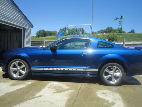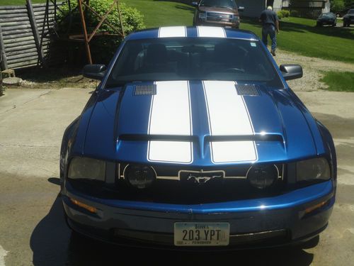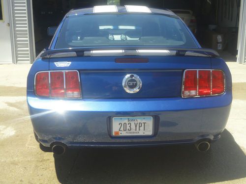 This is a 2006 Ford Mustang GT. It has 91948.3 miles on it. It has a Cervin's ram air hood, and Pypes Muffler-Delete Axle-Back Exhaust so it makes some noise when you step on the gas. It Vista Blue in color with wide white racing stripes. The interior is black leather. It has the Shaker 500, 6 disk CD player in it. The tires are 2 years old but have great tread left on them, they are on 18 inch rims. I have owned this car for almost 3 years, it runs great and I love it. But I've married since and as my family is growing the car is getting smaller. Please contact me at 641-325-1200, or email at scobeejason@yahoo.com if you have any questions. Thanks for looking.