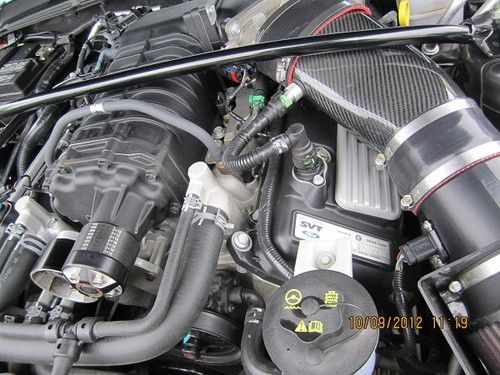 Car has an aftermarket carbon fiber cold air intake with a K&N filter (free flowing) and a Steeda reduced rate pulley (supercharger spins faster)and a tune. Steeda claim a 125hp gain over stock, see the Steeda website for more info.