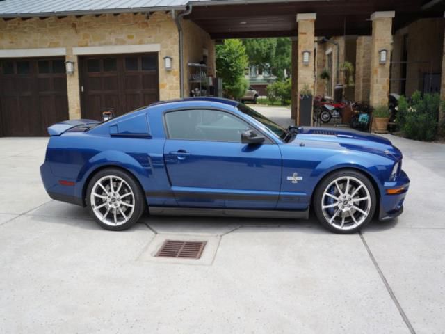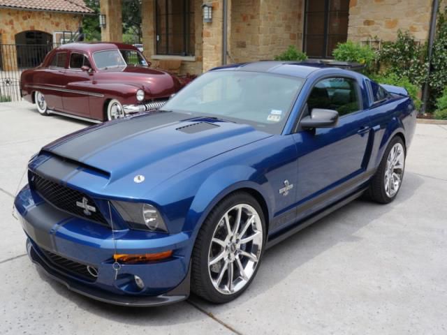 No matter how nasty, ferocious, and fast a car may be, there are always guys who want more. More power, more speed, more performance. And for those guys, a garden-variety Ford GT500 just wasnt enough. Enter this 2007 Ford Mustang Shelby GT500 Super Snake, a 600+ horsepower monster that over-delivers on one heck of a big promise. To get a Super Snake, youd buy one new 2007 Shelby GT500, then send it back to Shelby American for the big horsepower injection. Of course, its a lot more than just more power, with the Super Snake getting some special emblems and its most iconic feature, the custom hood with that giant scoop, all made of carbon fiber and rumored to cost more than $25,000. Each. The Vista Blue paint is factory-issue and like new in every way, and theres no question the guys at Shelby understood what customers expected in a $100,000+ supercar. Panel fit is excellent, the paint looks miles deep, and those satin black stripes add just the right aggressive look without being overpowering. Standard GT500 body parts round out the look, and theres nobody in the world who wont fall in lust with this Mustang the moment they lay eyes on it. The fact that its showroom fresh only adds to the appeal. The interior is standard GT500 as well, but thats hardly a bad thing. Deeply sculpted seats now wear Super Snake embroidery on the headrests and there are some special floor mats, but the rest should be familiar. What that really means is that the money was spent on the important stuff under the hood and since nobodys complaining about the accommodations in the Super Snake, well, better to just leave well enough alone. The black leather remains in excellent condition, as youd expect on a car with under 8535 original miles and the list of features is as long as your arm: A/C, power windows, locks, seats, and mirrors, cruise control, tilt wheel, and a kickin stereo thatll make your ears bleed before the engine will. Auxiliary gauges were added up high to keep an eye on the warmed-over engine, which, incidentally, was sold without a warranty simply because Shelby knew what kind of guys were buying such an animal. No surprise there. This car also has a spotless trunk still outfitted with a big subwoofer kit; hey, with 620 dyno-proven rear-wheel horsepower on tap, curb weight is almost irrelevant. OK, the good stuff: the original 4-cam GT500 engine is treated to a giant supercharger, a Kenne-Bell Whipple unit that out-performs the GT500 unit by a substantial margin. It makes full boost before you can get your foot on the floor and theres not a tire made that can keep it hooked to the pavement. Theres special tuning involved, an upgraded Borla exhaust system, oversized coolers, and everything else that youd need to make a reliable big-horsepower daily driver. The suspension got all of Ford Racings best stuff thats up to the rigors of all that horsepower and the binders are giant Baer 6-piston discs with upsized cross-drilled rotors. Trick Alcoa aluminum wheels were designed just for this car and carry 255/35/20 front and 275/35/20 rear Pirelli rubber. Shelby built only a limited number of these each year and they trade hands very, very rarely, so finding one on the open market is an extraordinary opportunity. Still the nastiest Mustang you can own, this one is fully documented and ready to rock. In addition to everything above, this car comes with all the stock takeoff parts. That includes wheels, stock super charger, stock takeoff parts This also come with a Viper alarm that has a one mile range. Lastly, this baby has lived in a climate controlled garage and been started at regular intervals when not driven. Fluids changed yearly and tread on tires is like new.