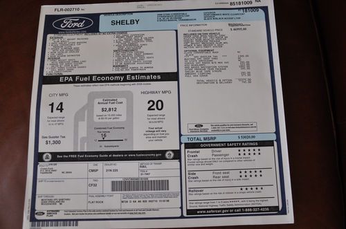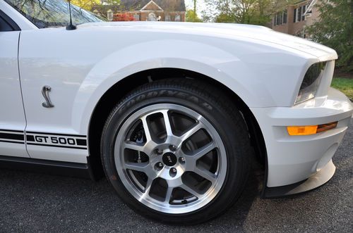 This is a one owner Shelby GT-500 convertible with only 6,638 original miles on it! It is white with black charcoal interior. It has every option available including ambient lighting, HID head lights, upgraded trim package and factory navigation. It is in perfect condition and we are non smokers. This car has never been driven in the rain, and the bottom is as clean as the top. This is my wife's car and has no modifications. Everything is original, down to the perfect condition tires. She only uses the car on sunny weekends to drive to the beach and has never been used as a daily car. We are only selling due to it not being used, but will definitely miss it! It has been garage kept since day one. If you are in the market for one of these cars you simply will not find a better condition GT-500 out there, it is just like new, without the new price tag! If you see this car you will buy it, perfect history with no damage ever. The front tag bracket is not drilled into the bumper cover, it just bolts on so it can be removed. We have all original documentation and this car doesn't need anything but a new owner - you will love it.