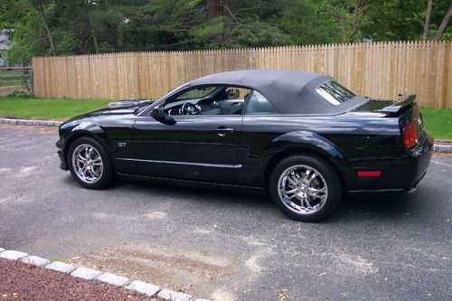 UP FOR SALE IS MY 2008 MUSTANG GT CONVERTIBLE , IT IS A ONE OWNER CAR WITH 6,000 MILES ON IT , THE CAR HAS A 4.6 V8 MOTOR WITH AN AUTOMATIC TRANY THE CAR IS BONE STOCK EXCEPT FOR THE NEW WHEELS AND A COLD AIR KIT I INSTALLED , THE CAR IS FLAWLESS ,IT IS AS CLEAN AS IT WAS THE DAY I BROUGHT IT HOME FROM THE DEALER IT HAS ALWAYS BEEN GARAGED AND NEVER BEEN IN BAD WEATHER THE POWER TOP WORKS FLAWLESSLY ALONG WITH ALL THE OPTIONS AND DRIVE TRAIN . MY CAR HAS ALWAYS BEEN ADULT DRIVEN AND YOU CAN SEE BY THE MILES THAT IT HAS ON IT IT HAS NOT BEEN DRIVEN MUCH THE CAR IS STORED IN A HEATED GARAGE IN THE WINTER THE MOTOR HAS MOBILE ONE MOTOR OIL IT IS AND IS CHANGED EVERY YEAR , IT HAS A SHAKER 500 STEREO A GREY INTERIOR AND A BLACK EXTERIOR THE DEALER INSTALLED A FRONT CHIN SPOILER , THERE IS A BOOT FOR THE TOP AND IT IS STILL IN THE PLASTIC BAG IT CAME IN I ALSO HAVE THE ORIGINAL WINDOW STICKER ANY 0 OR NEG RATED BIDDERS MUST EMAIL BEFORE BIDDING CHECK OUT MY FEED BACK AND BID WITH CONFIDENCE , I AM SELLING THE CAR BECAUSE I AM DOWN SIZING MY COLLECTION OF CARS THAT I HAVE THIS CAR HAS NEVER HAD ANY BODY WORK OF ANY KIND DONE TO IT THE PHOTOS DO NOT DO THE CAR JUSTICE COME AND SEE IT FOR YOUR SELF YOU WILL NOT BE DISAPOINTED THANKS FOR LOOKING
