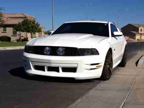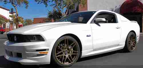 2011 Ford Mustang GT Coupe V8 5.0 Liter, manual 6spd. transmission. Amazing power at 412 hp stock! This car is unique, with custom diamond white paint and black leather interior. Forgestar Performance 20" wheels in bronze, Z-rated Toyos, Small drop with an Eibach Pro Kit, (the stance is perfect!) body kit, HID lighting, rear spoiler, dual power seats, Shaker sound system, SYNC, navigation, cobra grill/light kit. Only 24,422 miles. Car is in immaculate condition, and one of the sickest, head-turning Stangs on the road! Dealer serviced and still under factory warranty. This is not your average boring 5.0 Mustang and you will NOT find a car this nice with all the aftermarket upgrades for the price. Take it to a show, or enter it...compliments on this car constantly.