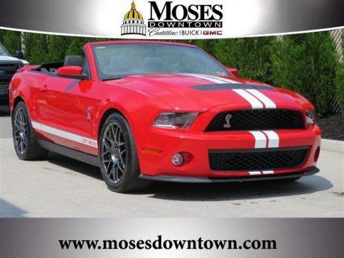 2011 Ford Mustang Shelby GT500, 2D Convertible, 5.4L V8 32V Supercharged, Tremec 6-Speed Manual, Red, and One Owner Clean CarFax. SVT PERFORMANCE PACKAGE Navigation System Package (Dual Zone Automatic Temperature Control), Enjoy the perfect weather driving around with the top down in this good-looking and fun 2011 Ford Mustang convertible. Awarded Consumer Guide's rating as a 2011 Sporty/Performance Best Buy. This Mustang would look so much better waiting in your driveway with it's top down instead of sitting here empty on our lot. New Car Test Drive said, "...at the front of the pack when it comes to performance per dollar...more features, more comfort, and more sheer performance than any previous production Mustang, and it's priced to sell..." All of Moses Downtown's pre-owned vehicles have been through a 117-point inspection at our award-winning service department. If you have a question, comment, or would like to schedule a test drive, please call us today at 877-556-5630. And be sure to check us out at www.mosesdowntown.com for our most up-to-date inventory and sales and service specials! MOSES CERTIFIED VEHICLES - All Makes & Models Certified! Our certification contains a complete 117-Point Inspection. We are WV?s Certified Used Car Store. Come see you today at Moses Downtown!