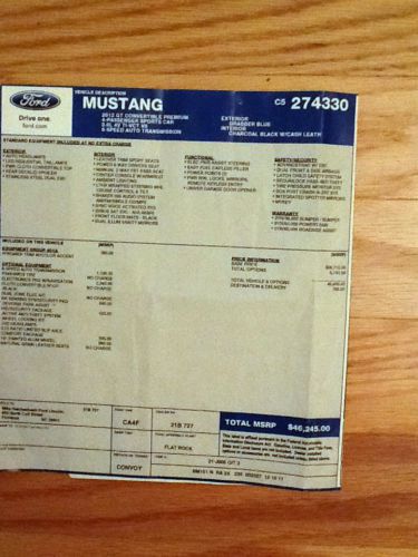 This 2012 Grabber Blue Mustang GT Convertible is loaded with all factory options. Original window sticker of $46,245.00 new (included). Low miles, always garage kept.