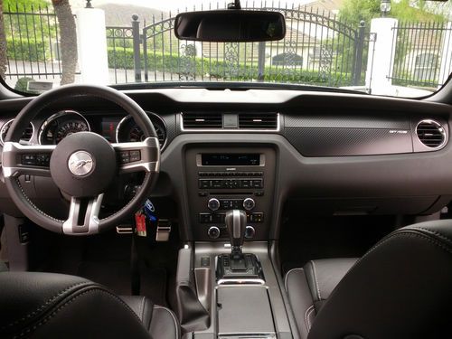 Options: California Special Package, GT/CS Carpet Floor Mats, GT/CS Side Tape Stripe, GT/CS Custom Interior, Gray Hood Stripes, Pedestal Rear Spoiler, Front Heated Seats, Side Scoops, Heated Side and Rear-View Mirrors, Mustang Door Entry Lamps, Auto Headlamps, LED Sequential Taillamps, Ford Racing Stainless Steel GT500 Dual Exhaust, HID Projector Headlamps, Ambient Lighting, Leather wrapped Steering Wheel, SYNC Voice Activated System, Optional Sirius Satellite Radio, Dual Illuminated Vanity Mirrors, 4.2 Inch LCD Screen in Instrument Cluster, LLumar Window Tint w/ Lifetime Warranty, NOAH Custom GT/CS Car Cover, Shaker Audio System AM/FM/CD/USB/AUX/Bluetooth, Voice Activated Bluetooth Handsfree Phone System, Leather Seats, CD Player