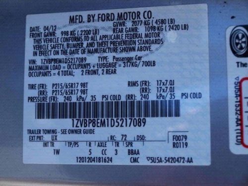 VIN (Vehicle Identification Number): 1ZVBP8EM1D5217089