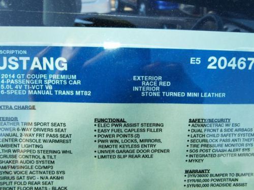 Call Now, 877-563-9167 Only At Pundmann Ford!! Treat yourself with our 2014 Mustang GT proudly displayed in [[[TrimColorBlack]]]. Under the hood sits our world class 5.0 Liter V8 that kicks up 420hp and is tethered to a fun to drive 6-Speed Manual putting you to 60mph in 4.6 seconds. Together this combination exceeds 25mpg on the open road and no mainstream Mustang has ever handled better or accelerated better than today's Mustang GT! Our GT is the one to have with Upgraded everything from the powerful engine to the aggressive bold look that sets you apart from the V6 model. This coupe delivers the bold styling, rear-drive performance and affordability that have been Mustang hallmarks for decades. Our V8 is loaded with everything you can imagine, just look at our pictures and plant yourself behind the wheel. Safety features like electronic stability control, traction control, ABS, side airbags and sweet looking LED sequential tail lamps compliment the look of the fog lamps up front. The heritage recipe from the Blue Oval team is leaner and more aggressive than ever before. The stance is commanding, the look is fascinating and Mustang will make you just feel great the second you fire the engine. Almost everyone in America has a Mustang story, start your chapter today or relive your youth with the growl of this V8. Print this page and call us Now... We Know You Will Enjoy Your Test Drive Towards Ownership! Pundmann Ford in St. Charles, MO, is proud to be an automotive leader in our community. Since opening our doors, Pundmann Ford has maintained our solid commitment to our customers, offering the widest selection of cars and trucks and ease of purchase.Pundmann Ford, Since 1925