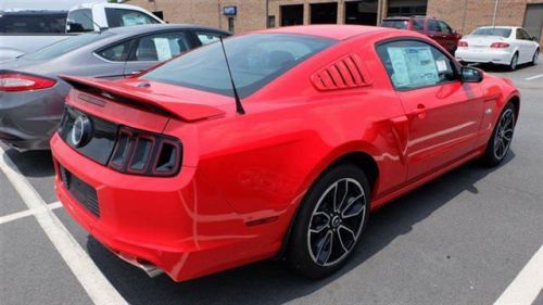 This 2014 Ford Mustang 2dr 2dr Cpe GT Premium Coupe features a 5.0L 4V TI-VCT V8 8cyl Gasoline engine. It is equipped with a 6 Speed Manual transmission. The vehicle is Race Red with a Charcoal Black Leather interior. It is offered with a full factory warranty. - Air Conditioning, Cruise Control, Tinted Windows, Power Door Locks, Tachometer, Digital Info Center, Tilt Steering Wheel, Steering Wheel Radio Controls, Side Airbags, Keyless Entry, Security System, ABS Brakes, Traction Control, Dynamic Stability, Rear Defogger, Fog Lights, Intermittent Wipers, 19 inch Aluminum Wheels, Leather Interior Surface -