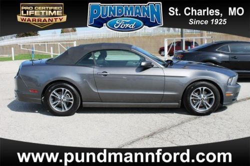 Call Now, 877-666-0327 Only At Pundmann Ford!! Our 2013 Mustang V6 Premium Convertible has a vivacious V6 and adept handling abilities that will please more performance-oriented buyers, but you will have to slide behind the wheel to feel the true power, the soft ride, and the pleasant feel. That is of course if you aren't still marveling over the true beauty of this Mustang while also sporting ample convenience features that will lure the luxury car crowd. Its 3.7L V6 will turn heads and make you smile as you are taken back to those childhood dreams of driving a 'Stang! In typical Ford style, this Mustang offers cutting-edge safety, conveniences and tech amenities. Check out the features list and the pictures, you will immediately fall in love with the bolstered leather seats, Shaker audio system and Ford Sync! Can you say Gone in 60 Seconds? This is a truly beautiful car that most people dream of owning or at least driving! This one just screams to be taken out on the open road! Our Mustang Convertible is waiting to be yours! Print this page and call us Now... We Know You Will Enjoy Your Test Drive Towards Ownership! Pundmann Ford has been in St. Charles since 1925 and remains as the only New car dealer in the city. Pundmann has a complete selection of Pre-owned vehicles meeting a wide variety of consumer needs from lower budgets up to premium models.Call, email or stop by today877-666-0327