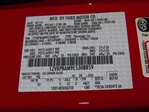 VIN (Vehicle Identification Number): 1ZVBP8AM9E5308859