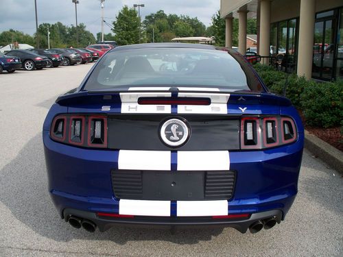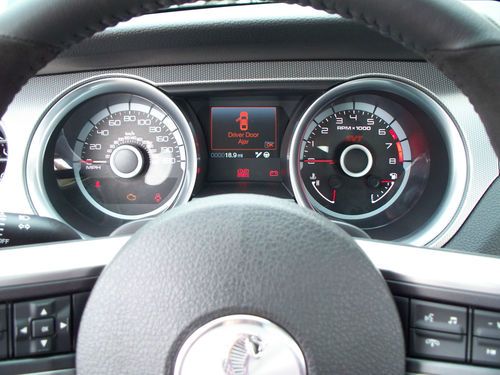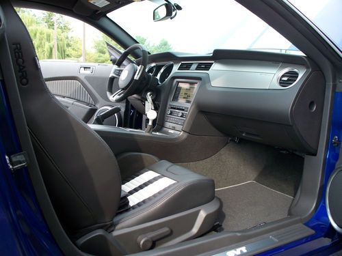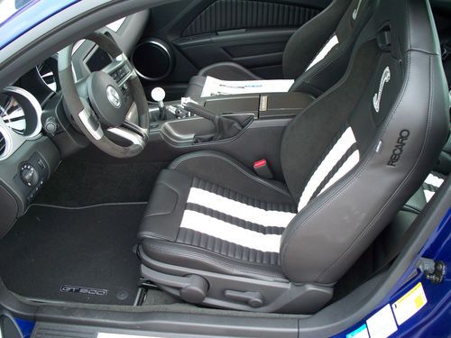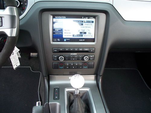 The GT500 is fitted as standard with leather upholstery, a leather-wrapped steering wheel with Alcantara trim, brushed aluminum interior trim, a 500-watt Shaker audio system with SiriusXM satellite radio and an AUX input jack, HID headlights and LED foglights.