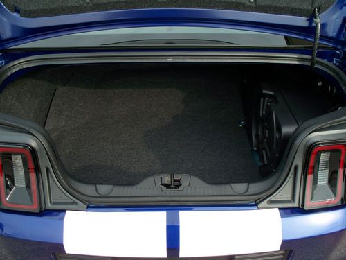 The interior continues to utilize a sporty dual-cowl dashboard design, vintage-inspired gauges and an oversized three-spoke steering wheel. Model-specific touches include Cobra badges, a cue ball shifter and "racing stripe" seat trim. Unfortunately, the GT500 features the same abundance of hard, dark plastics as the rest of the Mustang lineup, which feel out of place given the price tag.