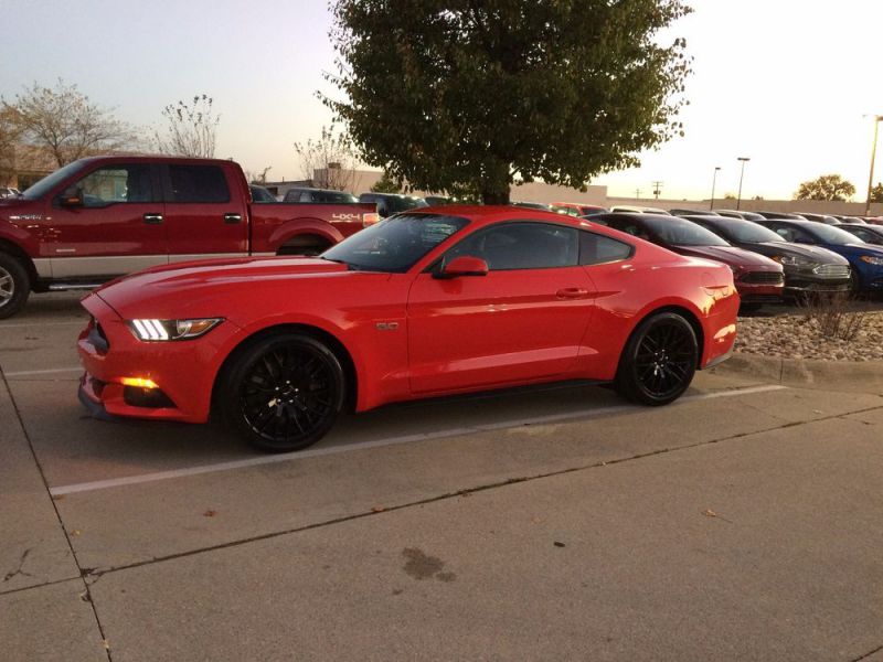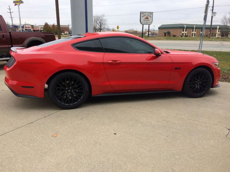 Race Red Performance Package Mustang GT 5.0. it has never seen rain always been garaged every night since i have owned here are some of the things i have done to the car i put blackout pony emblems KIT Black 5.0 on both sides black pony in front grill and black GT on back. i also tinted the windows including windshield which looks fantastic. I PUT real factory OEM GT350 COBRA spoiler. This is a Track Pack car 3.73 ratio rear end, Brembo front brakes , Torsen bar, reverse PARKING sensors heated and cooled seats navigation you can change the lights in the gauges to about 10 different colors as you wish also has different drive modes sport ,normal and track also has a launch mode which i never used there is not a scratch on this car ANYWHERE.