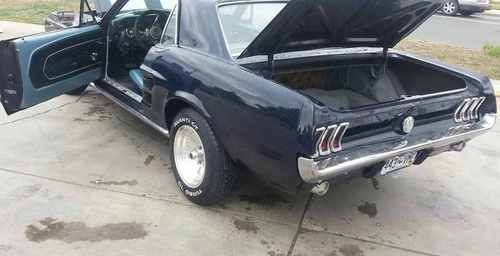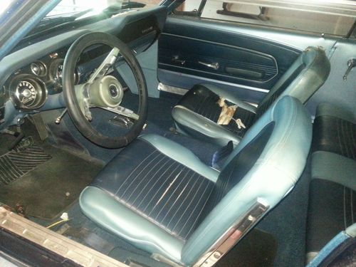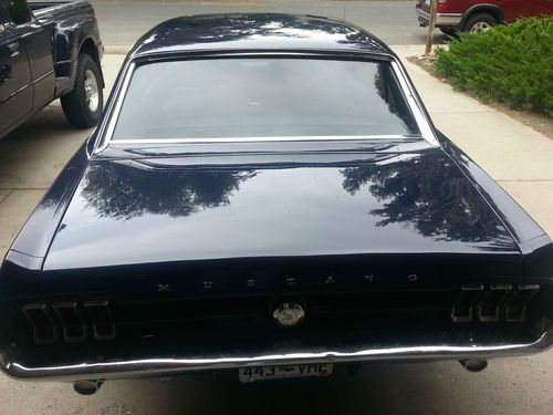 THIS IS MY 1967 MUSTANG I HAVE UP FOR SALE . IT IS A VERY NICE CAR AND VERY SOLID . IT HAS A VERY NICE MIDNIGHT BLUE TO IT WITH A LIGHT WINDOW TINT THAT SETS IT OFF . WHEN DRIVING THIS CAR IT ALWAYS GETS A THUMBS UP . THE INTERIOR IS NOT TO BAD OF CONDITION . THE 2 FRONT SEATS NEED A LITTLE WORK BUT NOT MUCH . LOOK AT PICTURES . IT HAS A GOOD SET OF TIRES AND RIMS ON THE CAR . AND THE SUSPENSION FEELS GOOD AND SOLID . THE TRUNK INSIDE IS IN GOOD CONDITION WITH NO RUST . LOOK AT PICTURES ALSO . THE HEADLINER IS NEW . THE CAR NEEDS A REAR VIEW MIRROR . AND ALSO A OIL SENDING UNIT . AND NOT SURE WHY THE GAS GAGE DOES NOT WORK . I HAVE HAD THIS CAR FOR AWHILE BUT GOING TO START ON MY NEXT PROJECT . A 1966 MUSTANG . I HATE TO GET RID OF IT , BUT THEY ARE A LOT OF FUN TO HAVE . IF YOU HAVE ANY QUESTIONS PLEASE EMAIL ME . THIS CAR IS ALSO BEING SOLD LOCALLY . AND THE TITLE IS IN HAND . SHIPPING IS YOUR RESPONSIBILITY . I WILL ASSIST IN HELPING . PLEASE MAKE OFFER . IT NEVER HURTS. PLEASE MAKE PAYMENT WITH IN 3 DAYS .