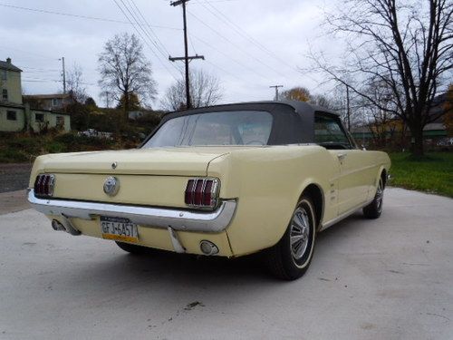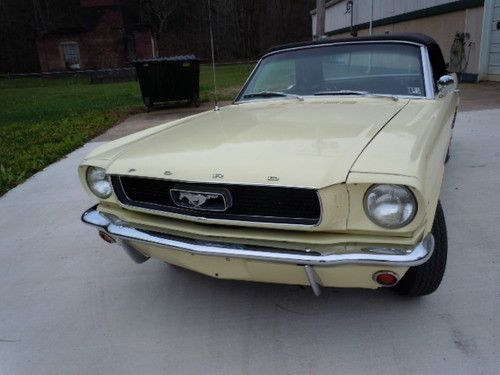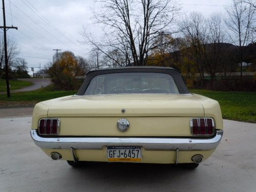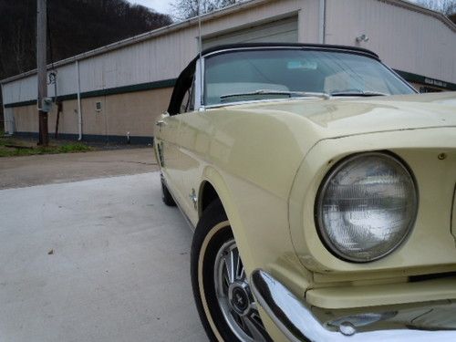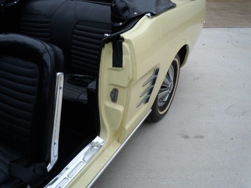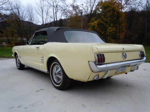Up for sale is a yellow 1966 mustang convertible, 6 cylinder , automatic with manual like new top. The interior is black and is in very good condition maybe 9.5 out of 10. Rust free except some surface rust underneath. Like new chrome bumpers. Paint is very good with a few scratches and road chip touch-ups and is 8 out of 10. See some bubbles on the lower driver door. No power steering or brakes. Runs good and overall is in very good condition Shows 70,100 miles but don't know is that is correct.