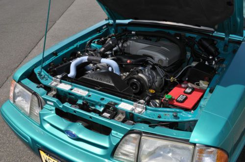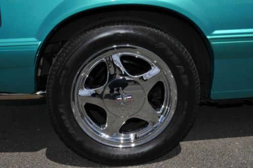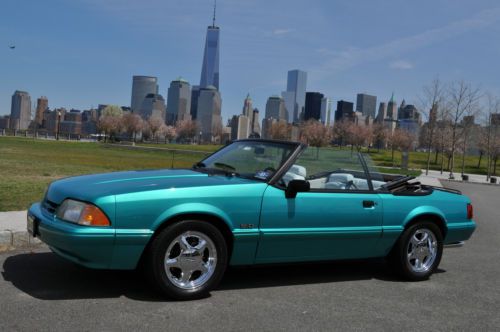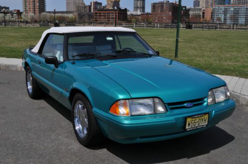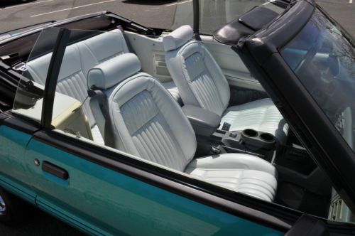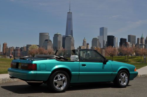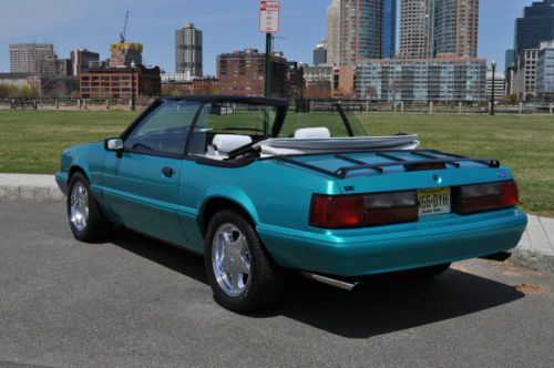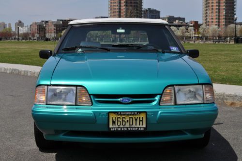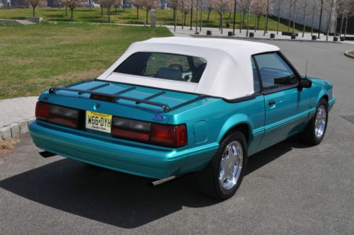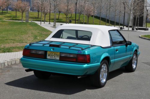 Rare color combo 1993 Mustang LX Convertible. I have history of the car and this is the one worth your consideration. Must see this car in person to appreciate. Its a stunning 9.5 + RARE color and options list as follows. Factory optional chrome pony wheels were waxed since day one no scratches or fading Factory optional blue silicone hoses Factory optional 130 amp alternator (I had chromed) Factory optional HD sway bars with poly bushings. Factory optional Dual vanity mirrors Factory optional running horse floor mats still look like new. I added only a stainless steel polished laser etched Flow-master exhaust I also added Power Stop Zinc rotors and matched pads for todays insta text drivers. I added new struts to the car while it was getting serviced. Alarm was added for piece of mind. Alpine CD was added for some good sound. I had a Ford tech break down the car being as brief as possible after recent FULL SERVICE SYNTHETIC fluid and tune up. Tires Good/Year-95% Wheels-100% no scratches or fading Paint -95% No fading or discoloration like you see on most of this era. Original as well. CLEAN CARFAX Trim-95% No fading on the black trim. Always garaged. Engine-100% over 150psi in all 8 Cylinders. Two weeks on Full tune up with ALL sensors included. New oil pan gasket and Rear mail Seal. NO LEAKS AC/HEAT-100% Work well Heater core was flushed out and AC was serviced and switched to 134A Transmission-100% AOD automatic was tested with no slips or hesitation, was serviced with car finding no clutch residue in pan. Shifts perfect, even for the critics, this one is good.NO LEAKS Interior-95% Seats are NOT cracked up like most and are bright white. Convertible Top-98% Its power top and NEW and very high quality with the GLASS not plastic and it is as white as interior. Body-98% NO rust anywhere to be found. A few typical little dings that cant be seen unless your looking. To get these high %'s on any 20+ year old car is amazing. Power locks and windows work. Must see and drive. new business forces sale. 12,500.00 INVESTED Steal it @ 8500.00 NADA VALUE is OVER 10K! Cash Pay Pal or bank check must clear. I will work with shippers but you pay for fees.. I sell BIG MONEY ITEMS ON EBAY ALL THE TIME>>DONT BE AFRAID TO HIT THE TRIGGER>I STRAND BEHIND THIS CAR WITH PERFECT FEEDBACK..ALL THE WORK IS DONE..JUST FILL WITH GAS AND GO FAST WITH THE TOP DOWN!