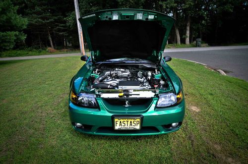 You are bidding on my 1999 Electric Green Metallic Mustang SVT Cobra show car. I am the second owner and purchased this car in July 2000 with 12,800 miles. During the first 20 months this car was my daily driver and 20,000 miles was put on it. In December 2001 I purchased another daily driver and at that time the Cobra became my specialty and hobby car. At approximately 34,000 miles, the extensive modifications began. I estimate that there is over $20,000 in modifications on this car; most records are still retained. This car was primarily a show car but in the mid 2000's was drag raced on a few occasions. In April of 2007, the car received substantial power through the addition of a Paxton Supercharger and other related modifications. At that time the car became an exclusive show and cruise night car. Since December 2001 the car has averaged approximately 2000 miles per year and, of course, has always been garage kept. The Cobra has been a big part of my life but after 14 years and many car show trophies it is time to let someone else enjoy her. I will now list most of the modifications and some background of the car.