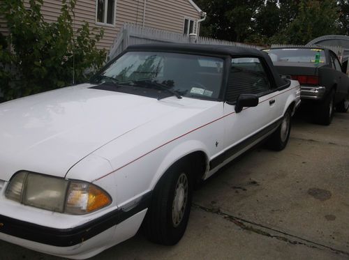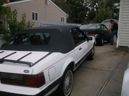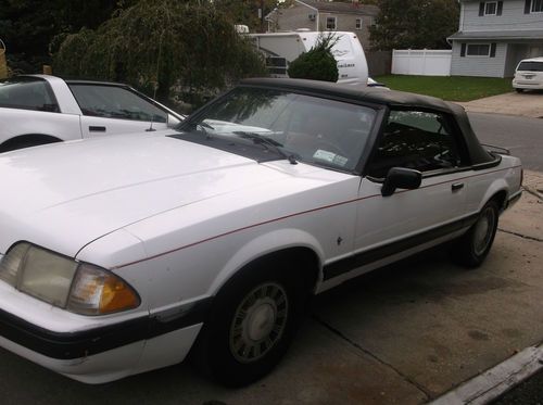 For auction we have a 1988 ford mustang notch back convertible with the original 4 cylinder motor which runs good and is great on gas,automatic transmission,a/c, heat ,stereo,2 year old convertible top,this was my daughters first car and it has been good to us shes been using it for 3 years now and has now moved up to a 4x4,this car is being sold AS-IS to the highest bidder with NO - RESERVE,This is a 25 year old car it is not a show car but is very respectable,it runs it stops the tranny is fine ,the car needs TLC,But is good transportation for a new driver or a good car for a collector being that it is unmolested and 100percent original,,i would put new tires on it if we were keeping it,a very nice car for someone just learning how to drive,if you live local your more then welcome to come check it out before bidding,i will reserve the right to end this auction at any time if it is sold locally ,I will answer any and all questions via ebay email,we will not ship this car but will assist the winner if need be in any way we can,there is no rot on the car and everything is solid,good luck...