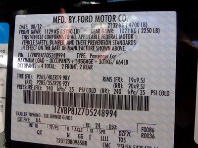 2012 mustang gt500 5.4l v8 32v manual coupe premium performance keyless entry(US $49,500.00)