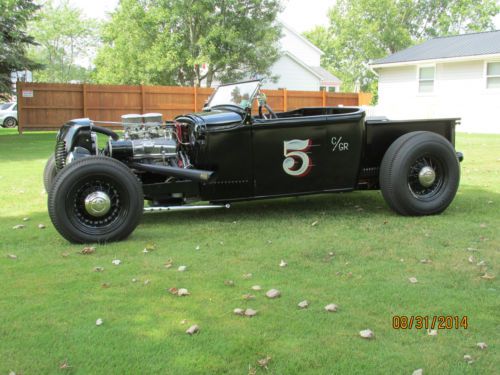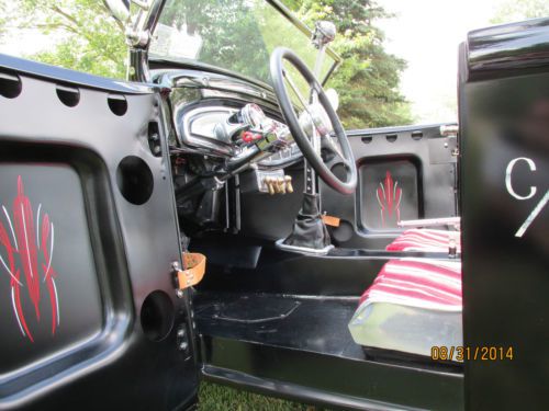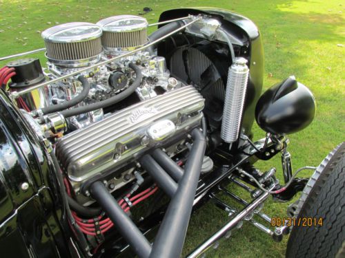 Finally for your enjoyment. A 1931 Ford Roadster Hot rod custom build. Detroit Top 100 rod. Body: A original 31 roadster cowl. Truck has Brookville doors. Extended cab box. The truck was channeled 4 inches which gives it that wicked stance and looks sinister sitting still or flying by. Custom BF Avery Model A grill shell. Don't let size fool you. I am not a short guy and I sit comfortably in this rod. This rod was built by a local well known custom shop and no corners were cut in creating this work of art. Paint is two tone with a shiny top and hot rod Flatz lower middle. So close you will need to look twice. Not primer paint. Beautifully pinstriped throughout the body- again you will have to look twice. Interior: Has a Crafty B dash and shifter. Has classic instrument gauges and they all work as they should. Bomber style seats with cushions and a steel floor. Gauge cluster is custom with pinstriping on inside doors. Tall shifter to give you that sinister look while banging through your 5 speed. Look closely at pictures and videos - you will continue to see one more cool thing every time. Engine: 1969 block 383 with a 4 bolt main. 400 crank 30 over with Edelbrock heads. Which also includes Edelbrock intake and carbs. Full hydraulic roller and a Joe Hunt electronic distributor /mag. Edelbrock finned valve covers over and overflow and the motor is polished out to the max. A real diamond look next to the black finish. Transmission: GM 5 speed. Yup 5 gears in this bad boy for you to enjoy. The rear end is a Currie 9 inch ford sporting a 355 posi. on Dayton wire wheels. Frame: Riley Automotive frame. Z'd 8 inches in the rear and 4 inches in the front. So-Cal drilled Axel. Pete and Jakes components 40 Ford brakes with Buick drums and Crafty B brake covers. All stainless brake lines. Frame is painted and the under side of this rod looks as nice as the chrome on the top side. No corners cut. Truly folks we can do this for days. Look at pictures watch the videos. This truck has countless local awards will always draw a crowd in my town or yours every time. What more can I say? Bid away! I am moving on to my next build. Loved this rod for over 2000 miles now it's your turn.