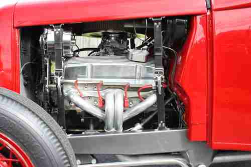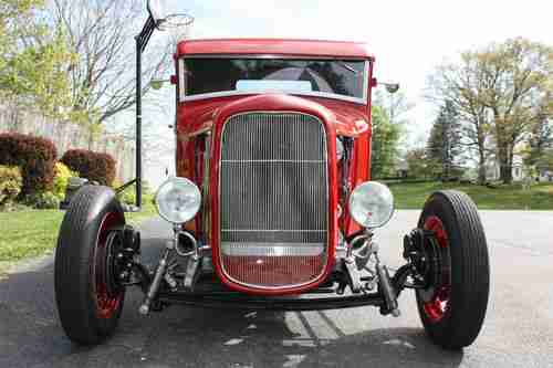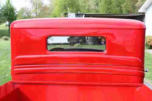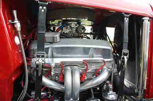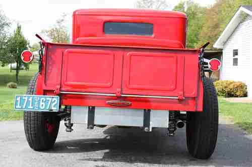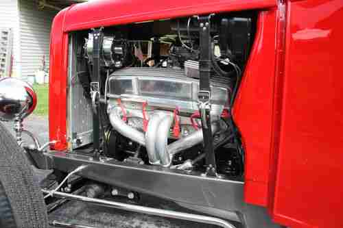 My friend that started the build bought everything new except the cab,rear end,and wheels.The frame is new from DCR Hot Rods in Denton N.C.and has been powder coated a charcoal color,all of the suspension parts are new from Speedway.It has a new 604 Chevy crate engine with aluminum heads and roller cam,air gap intake and Edlebrock carb.(very powerful)It has a new 700R4 trans with 2200 stall converter. It has a new balanced drive shaft,all new power brakes,and unirack steering.(no play in steering) It has a new chrome tilt steering column,all new gauges,and a new wiring harness.The lights are all new and the headlights have the signals built inside them. New aluminum radiator and electric thermostat controlled fan.It has a new A model style bed with oak floor and stainless strips. A new stainless gas tank,and new billet fuel door inside bed. It has new bias ply tires from Coker (16inch) and new hub caps and trim rings.It has a 3.73 limited slip ford rear end.(works good with overdrive and tall rear tires).It has new glass,new aluminum windshield frame,and new power windows.