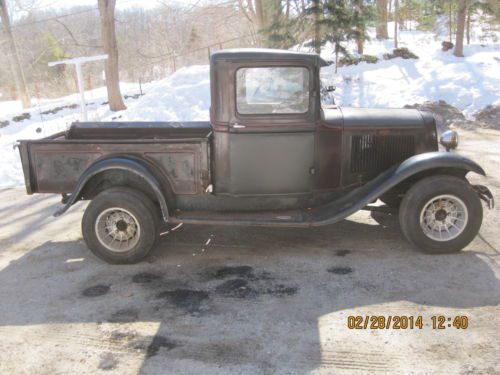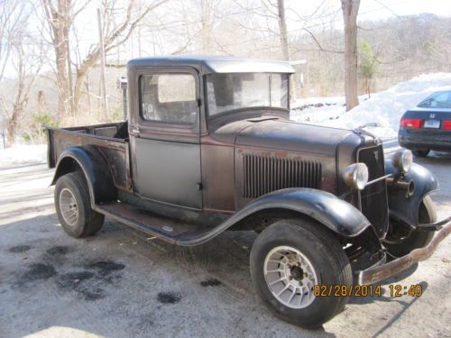 1934 Ford pickup, has stuck flathead motor, car has not been on road since 1981 it sat in a shed until I purchased it. It has hydraulic brake system with period after market wheels, all glass is in the car but would need replacement. Would make a great rat/street rod. Body is all steel except the rear fenders which are fiberglass. Paint and body work are showing their age, car does have some rust, recently replaced door bottoms both inner and outer, cab corners and partial rear panel along with new floors. The doors are complete with risers and glass, the bed of the truck will need replacement as it is weak, The truck is pretty much complete and waiting for someone to take it to the next level. If you have any questions or need any more pictures send me an email. Truck will be sold with bill of sale only, no title. I reserve the right to cancel this listing at any time for any reason. Truck will not leave until all funds have cleared my bank.