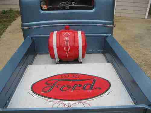 This little truck is a one of a kind! When anyone looks at it all they can say is Wow! First this is a 1935 ALL Real Steel Truck. It has a 1954 331 HEMI Motor with a chevy turbo 350 trans., Ford 9" Rear-end. 4" drop Axle with GM Disc Brakes. All new painless wiring harness, has sandsen shorty headers with all new dual exhaust with Harley Fish Tail Tips! Lokar Shifter with tall Stick. Has been chopped 2 1/2 inches, 1938 Desota Headlights. Coker Wide White Wall Tires with Coker Wheels, stainless bands and period correct caps. Custom pinstipping inside and outside. This is Definetly one Cool Hot Rod. Has adjustable coil overs. Rack and Pinion steering. Lots of time, thought and money went into this build. Banjo Steering wheel. Runs and drives Great and can be driven anywhere. It has a dual carb set up with 2 one barrel ford carbs that both work and runs perfect! Ready to Drive Or Show !!