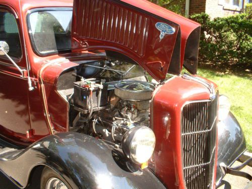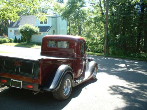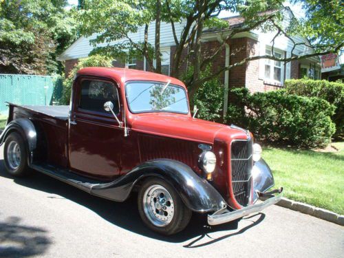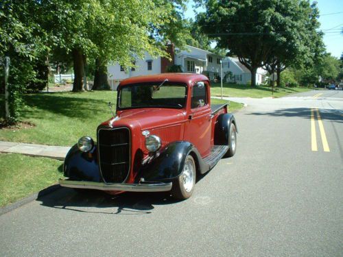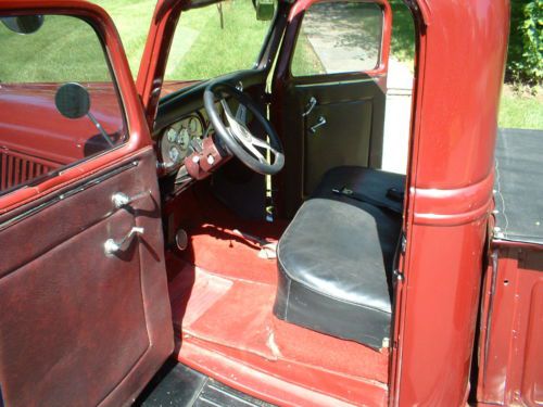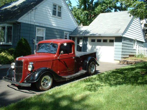 1936 Ford West Coast pick up truck. Older Restoration. Mustang ll Front end. All metal except rear fenders and tailgate. Runs strong. Dual Exhaust. Kenwood AM/FM cassette radio. VDO gauges. Needs some TLC. Hood tops are a little warped and will need to be straightened or replace. Electric fan was removed by mechanic and will need a replacement. to keep temperature at 180-190 degrees. High beam indicator in dash is not working( i think it's just a bulb). There are two horns, an old style and new style and they are not working(I think it's just a fuse or broken wire). There is a hole drilled in the dash that is currently empty. There are paint clips and paint fading on both the exterior and interior of the truck. Chrome parts have small pitting to them. Glove box door is in primer. Inside of Bed is original and not restored. Tires are in good shape and old. The "V8" emblem in the front of the truck is missing the top of the "V". Truck will come with a bill of sale, no title. Truck is for sale locally and I reserve the right to sell it that way and pull this ad. |