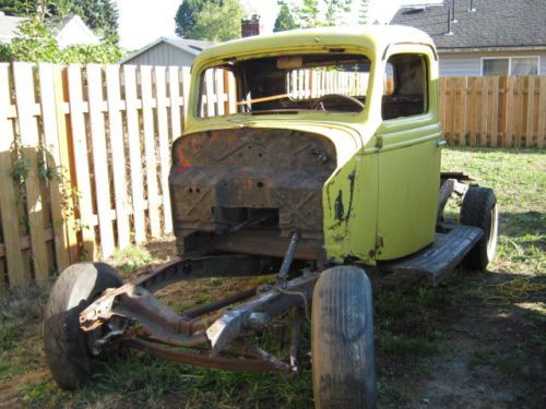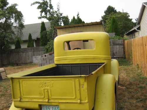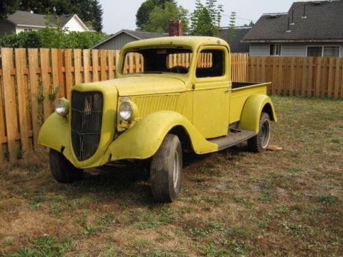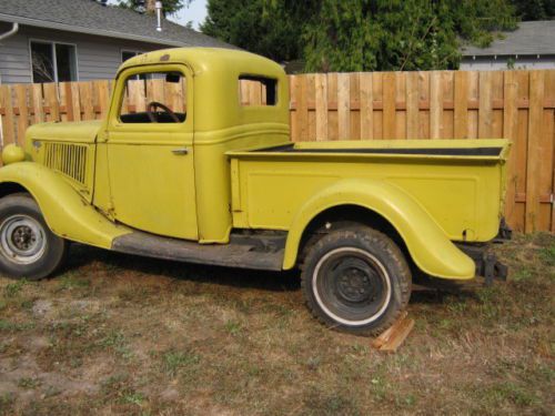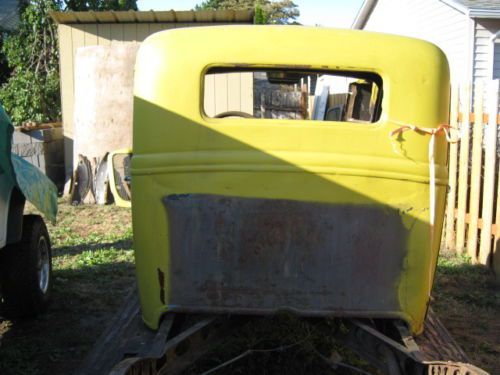 1936 ford pick up 1/2 ton all metal body no engine transmission rearend,has stock front axle with hydrolic brakes,cab needs rocker strips under door,cab has nice roof,back panel has original dash glove box door rear view mirror.have brake and clutch pedal assembly.the cowell air vent assembly is there and still tilts out. have original seat back and bottom. seat back is rough no material,will need new metal floor kit .the doors are good one with window regulator,i would replace both regulators have 2 new door handles.have front windshield frame and rear window inner trim piece.Hood is nice with locking handles still working. lovers on side pieces are good not bent up. headlight buckets are nice with small upper light, box is good condition with good front and side panels,under bed structure is solid,tail gate is nice do not have tailgate hinges. Have clear Idaho title and plate, email any ? before bidding thanks God Bless