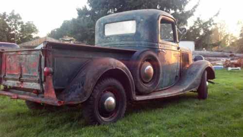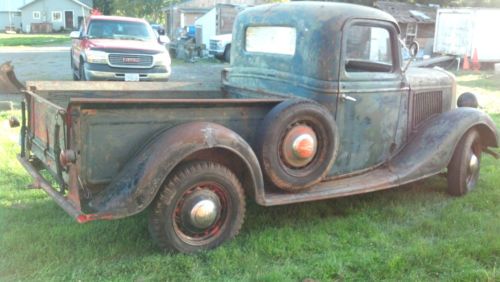 Here is a chance that does not come around very often . This truck was driven and stored back in 1968 or 69. Just a few spots of rust in lower door jams and stake pocket, easy fix stuff. We can do the patches for extra fee if buyer likes. Clutch and brakes work nice but motor is frozen but not cracked has antifreeze in it . Lots of choices with this pickup. Fix the Flathead drive it like its is,or do full restore. The pickup you see in background is my 36 I will never sell it. Just to much fun. Keep in mind most of us that have this kind of truck will keep them. That's why this is a rare chance to buy this pickup. Take a good look at this pickup ask your self when a chance like this will come around again........ Never! If you want to have the #1 most sought after pickup. Get to bidding.