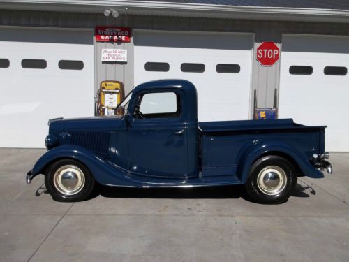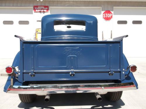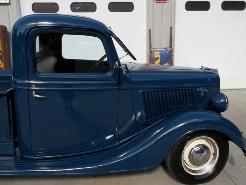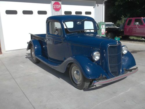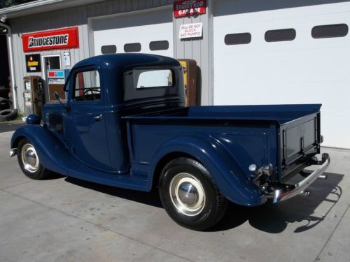 1936 FORD PICKUP TRUCK EXTREMELY CLEAN WITH A BUILT 1951 FORD FLATHEAD MOTOR WITH DUAL CARBS BUT ONLY RUNNING ON ONE, VEGA CROSS STEERING, S-10 5 SPEED TRANSMISSION TO DROP RPMS ON THE HIGHWAY. I BELIEVE YOU ARE UNDER 2000 RPMS AT 60, NEW LEATHER SEAT WITH SEATBELTS, NEW INSTRUMENT CLUSTERS THAT ALL WORK PROPERLY, NEW VINTIQUE WHEELS AND TIRES, NEW GAS TANK, NEW GLASS THAT ROLLS UP AND DOWN WITH OUT CHATTER OR HESITATION. WINDSHIELD ROLLS OUT EASILY AND LOOKS GREAT, NEW ELECTRIC HEATER, NEW WIRING THROUGHOUT, TRUCK DRIVES PERFECT AND TRACKS GREAT. ALL NEW DRUM BRAKE HARDWARE, NEW SHOCKS, AND SUSPENSION. NEW LIGHTS, TRUCK IS 12 VOLT, OFFENHAUSER INTAKE, STARTS UP PERFECT NO SMOKE, GREAT OIL PRESSURE 50-60.BS, FUEL GAUGE IS ACCURATE, CHASIS ENGINEERING FRAME PARTS, NEW EXHAUST, SINCE REBUILD IT HAS 2500 MILES ON THE TRUCK, IT WAS DONE 6 TO 7 YEARS AGO. NEW SWAY BAR MAKES IT HANDLE PERFECT. THIS IS TRUELY A ONE OF A KIND TRUCK AND NO DISSAPOINTMENTS. THIS IS TRULY A GREAT DRIVER. IF YOU GET HERE AND DONT LIKE IT YOU DONT HAVE TO BUY IT. WE HAVE PERFECT FEEDBACK AND STRIVE TO KEEP IT THAT WAY. THE TRUCK IS ALL ORIGINAL SHEETMETAL EXCEPT REAR FENDERS. NEW CHROME BUMPERS AT TIME OF REBUILD. IF YOU HAVE ZERO OR BAD HISTORY ON EBAY DONT BID. IF YOU HAVE TO ASK THE WIFE OR HUSBANDS PERMISSION DONT BID. I LOVE THIS TRUCK AND I THINK YOU WILL TO. CALL CHRIS AT 540-493-6568.
