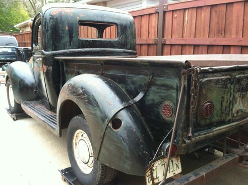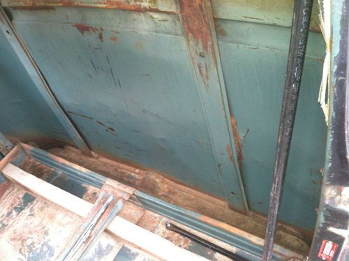 (BODY) Solid doors, fenders, cab, bed. running boards Rust issues are, the floor in the bed needs to be replaced, lower rear corners of the cab and drs/pass floorboards small sections needs repair, Tailgate is bent. Missing hood springs and latch ,no seat. Doors have regulators inside but glass is broken along with windshield. Also cab heater is missing, and gas filler tube.(See Pics)