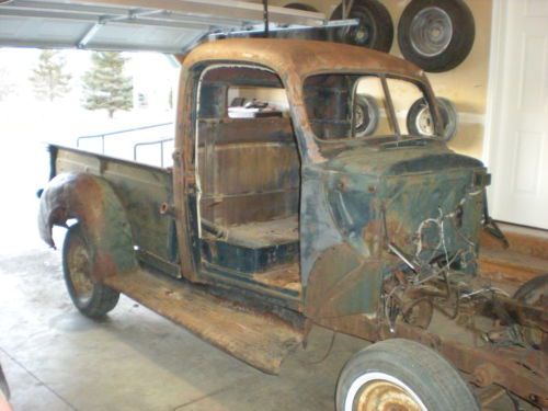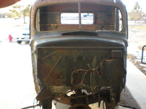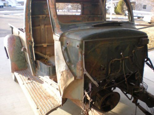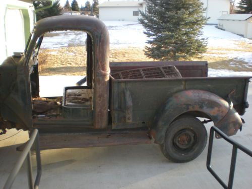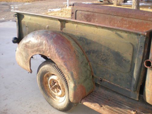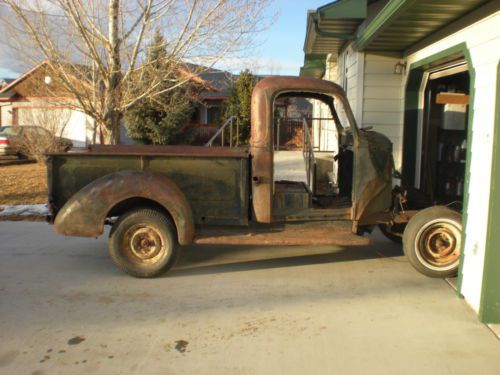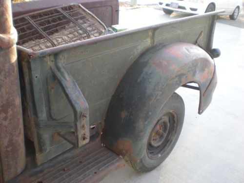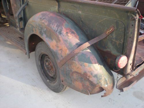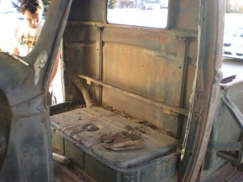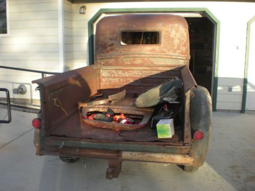 For sale are these 1942-1947 Ford 1/2 ton pickup body panels from a dry Montana truck - they are the only pieces for sale, not the chassis. I bought this for the frame and don't know much about the body except what I have to say here. Montana metal is the best! No road salt, dry climate - most of the original paint is still on the body! Why fight rust when you don't have too? If you blasted these, you'd have some solid parts to work with. Look at what these parts go for repro/used and you'll see this is a good package deal. Obviously, ask questions and shoot me an offer. You get: 1) Cab - very nice shape, only surface rust except cab floors (floors are rusty and need replacement panels), solid firewall/drip rails/window frames, uncut dash, includes valuable gauge cluster (not reproduced) and heater, comes with seat back springs (nice shape, still with some covering) but no bottom cushion, gas tank, reproduction passenger door (no drivers). I believe this cab fits 1937-47, but please check yourself. 2) Bed - fairly straight, has spare tire carrier, original metal floor covering, no tailgate, no wood subfloor. I believe this bed fits 1942-50 half tons, but please check yourself. 3) Rear Fenders - these aren't even reproduced except in fiberglass - no cancer but would need plenty of work repairing dents and tears 4) Running Boards - each has a 2 inch hole where pipe was welded on sticking upwards (not sure why), serviceable but would also need work Buyer is encouraged to inspect these in person; located in Belgrade, Montana, near Bozeman. Parts are sold as-is and where-is and buyer is responsible for asking questions before bidding, and for shipping. You get no title, frame or running gear with this, only the parts listed above. I require a $500 PayPal deposit and the balance in cash upon picking up the parts, which are loose from the frame and ready to load. I will be happy to answer any inquiries. Thanks! 406-594-3075 |