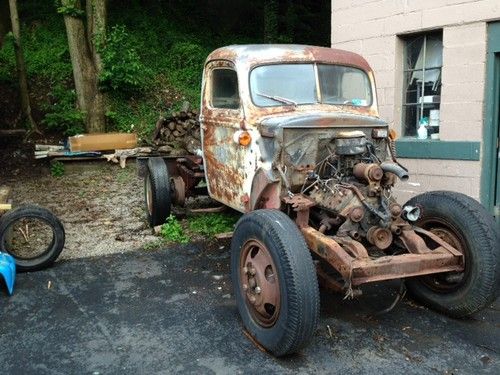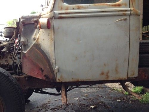 1947 1-1/2 ton , manual trans with 2 speed axle, flathead V-8. Originally a tow truck, has no bed on it , but the controls are still there. The good: truck is pretty solid for the year and the doors alone have hardly any rust or dents, and the door bottoms are usually rotted right off, original seat and fuel tank location , has the 2 speed axle with controls and original data plate is still intact in the dash/ glove box, the papers are clear and the originals for the truck, all glass is there, cab mounts are not rotted, have fenders, hood, hood latch, straight grill and inserts which is hard to find, pretty solid start.