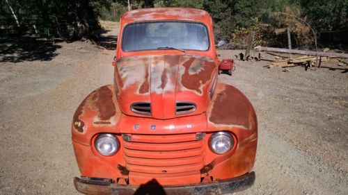 1948 Ford F1 1/2 ton short bed 2WD pickup truck with original 95 HP 226 straight 6 and bullet proof 4 speed on the floor transmission. This Nevada ranch truck has been well maintained through the years and is rust free in the cab and floor boards. It has the original factory assembly line date on the fire wall. All of the gauges in the instrument panel function properly. The engine was rebuilt about 25,000 miles ago and does not smoke, use oil or run hot. The carb was recently rebuilt and the truck starts right up each time and runs strong. The drive train has been well maintained using Amsoil in the rear end, trans and engine. This truck is not a fake barn find, it's a maintained original truck. There is no rust in the cab or floors. There are some rust spots near the grille as seen in the photos. The wonderful patina on the hood is superficial rust only, no flaking or thin spots. All the glass is good no cracks. The headlight wiring harness needs to be replaced and many of the original wires are brittle. The tires are fine but getting dry and should be replaced if running on the highway. The truck was painted Hugger orange in the 1970s. Would make a great rat rod shop truck or continue on as a family ranch truck. I have the clear Nevada title in hand.