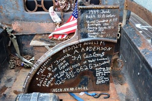 Highly modified and cultured 1949 Ford Dorf Rat Rod by Frank Anderson Customs, it won three awards in 2012: Tacoma SE Lions in the Rat Rod Custom bracket, it took 3rd place at Bowen Scarff in 2012 and won the coveted, "Most Likely To get Pulled Over." At the Rat City Rods Car show in Everett,WA at the Anchor Pub.