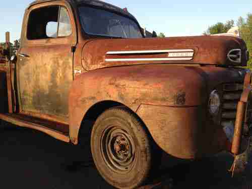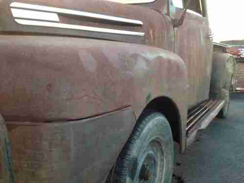 This is a 1949 Ford F-1 1/2 ton short wheel base Texas truck. This truck has does not have a motor nor transmission, It did have a three speed on the column. Sheet metal is very nice and solid with the exception of the driver side rear fender which need some body work. the front fenders are solid and grill is untouched. doors are also very nice straight and solid. Some floor repair will be needed, the trans mission hump replaced. This is one of the better ones that I have run across in a long time. I am including a great open Arkansas title and VIN plate. First one to buy it is going to have themselves a great truck. Thanks again and good luck. Robert Garza 479-466-1924