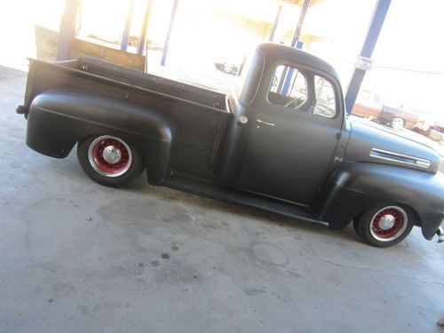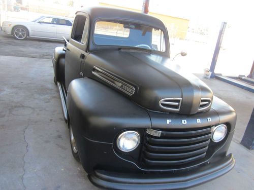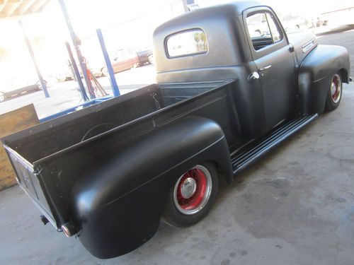 1949 Ford pick up, PERFECT shop truck, put on logo, and goooooo!!!! The little pick up is powered by a great running 350 V8, and a smooth 350 auto trans.. It is equipped with mustang two rack, and pinion front susp., power disc brakes, 10 bolt chevy rear end ( drum ). It has working gauges, it has been pro c- notched in the rear, so its nice ,and low, and rides great( no bangy bangy!!! ) The interior is sanitary in black ( see pics. ) The truck is painted in satin black, it has wire wheels, and is good to go!!! ( this is not a show truck, it has plenty of imperfections, its a good old hot rod with all kinds of potential!!! ) If you have questions you can email or call 1-559-906-2295.. 1000.00 due at auctions end, balance in 5 day, shipping is buyers responsibility. Please only bid, or offer, if you are ready to buy, and can comply with the payment guidelines!