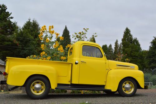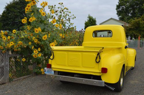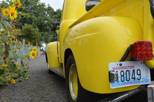 1950 FORD F1 SHORTY Up for bid is a beautiful bright yellow ford f1 with a rebuilt 302 V8 engine with automatic transmission only 968 miles on engine! Definitely an eye catcher. Over $20,000 in receipts. Very cool truck and excellent driver. Who wouldn't want to cruise around in this old school custom? Very minor rust, body is straight and good interior. Also has disc brakes. For questions, comments or more pics please give PAUL a call at 541-653-2420 NO RESERVE!!! Located at I5 SALES 86720 Franklin BLVD, Eugene OR 97405 DA2697 |