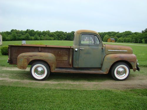 Up for auction... 1951 Ford F3 Long Bed Pickup in amazing condition!!! Has the usual dings, dents, and chipped paint for a 61 year old farm truck.. 17253 Original Miles.. Fantastic Patina lots of surface rust on original paint only!!! ZERO RUST ROT !!! GOOD SOLID OLD GIRL.. Now the good stuff.. New 12V EZ-Wire harness.. New Classic Instrument gauges.. New Ron Frances switches.. New Speedway Motors Bear Claw Door latch.. New LED Tail, Running, Brake, Turn, and Park Lights.. Vintage Yankee side mirror's.. New H4 Headlight's New Fuel Tank.. New Wiper Motor from Gear Heads.. New Drum Brakes front and rear.. Original Flat Head V8, 4 speed transmission, and rear end.. Also in the auction are the 4 stock wheels and tires.. steering wheel.. New cardboard headliner, New sun visor's.. New door rubber.. Wood bed was in sad shape and had to be removed, plywood now takes its place.. and the passenger side glass has a crack.. Check Out Pictures.. Ask Questions.. The pictures don't do it justice you won't be disappointed.. BUYER IS RESPONSIBLE FOR ALL SHIPPING AND PAYMENT ARRANGMENTS.. $500.00 DEPOSIT TO PAY PAL 24HOURS AFTER END OF AUCTION!!! ONLY SERIOUS BIDDERS PLEASE!!! HAPPY BIDDING!!! P.S FLAT HEAD RUNS GREAT!!! Thanks for stopping by..