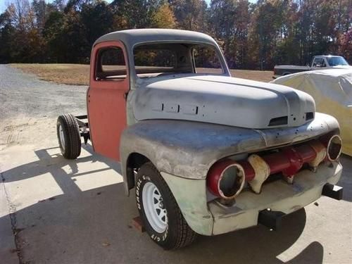 1952 Ford Truck long bed on a fat man's frame. Upper and lower control arms, rack and pinion steering. Power disc brakes front 9in. Ford rear end. set up 351 Windsor. C4 trans. Body work completed, panel welded in. $10,500.00