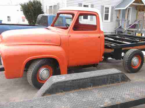 i have a 53 ford f-250 flatbed factory ford flatbed in excellent shape, frame has been sandblasted and painted real clean cab needs work, has a 350 olds with a automatic trans truck runs and drives in yard no brakes cab needs floors and door windows.truck comes with a bill of sale no titles in ny on anything older than 1973, low reserve