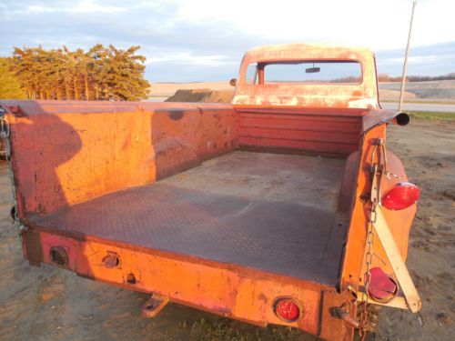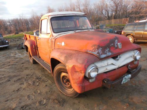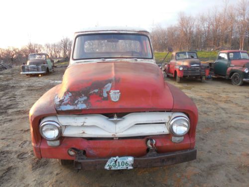 JUST IN FROM A LOCAL FARMER; 1955 F-3 PICKUP; IT DOES HAVE SOME RUST; AND A COUPLE DENTS; LOOK AT THE PIXS AND ASK QUESTIONS; THIS WAS RUNNING 3 YEARS AGO; JEFF 218-464-2821 |
