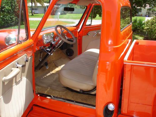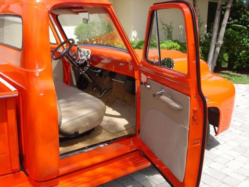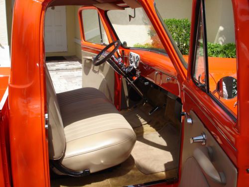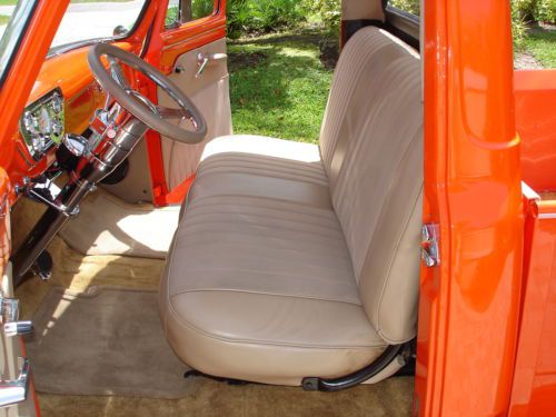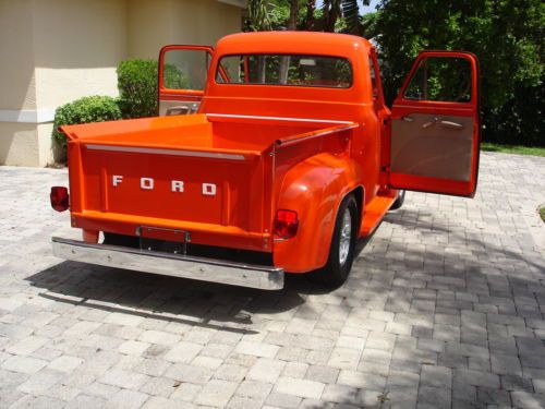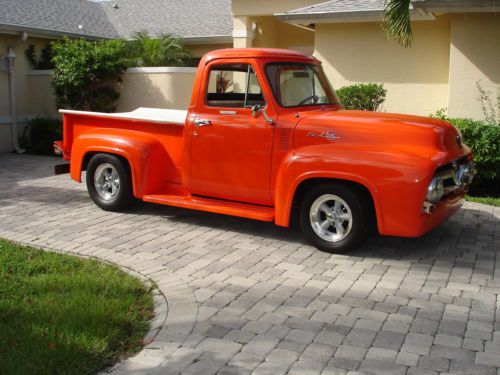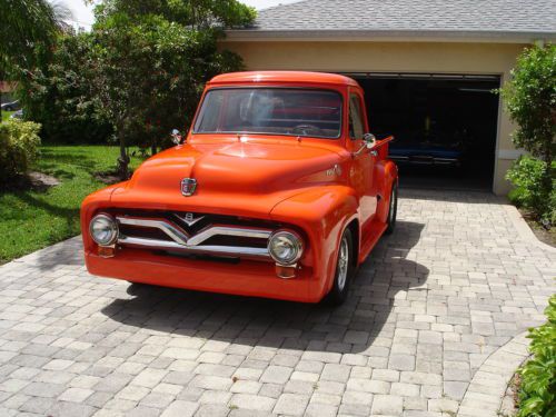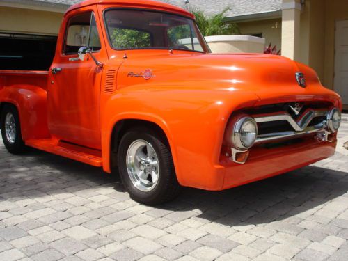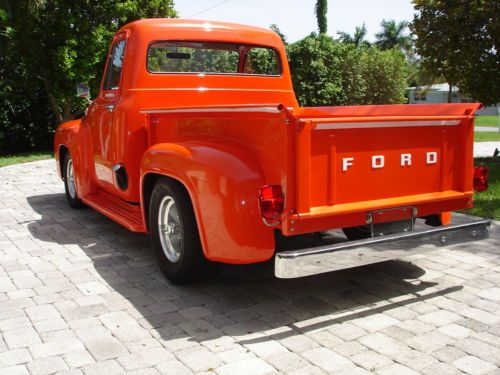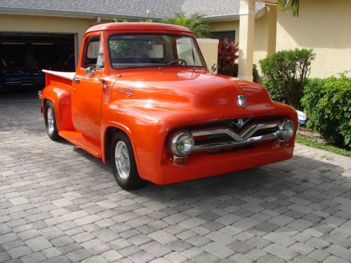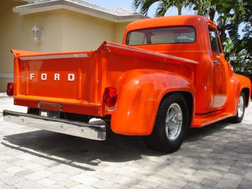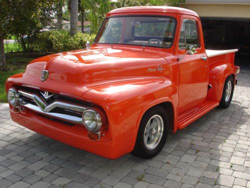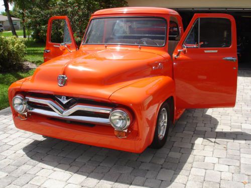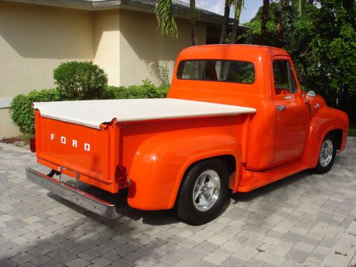 1955 Ford pickup, painless wiring harness, chrome IDIT column, custom dash and gauges, tach, chrome trim inside, Bango St Wh leather wrap, custom door panels and seat, column shift, new door latches, new window regulators, polished stainless steel bed hardware, chrome bumpers & grill, American mags and knock offs, custom insulation throughout,Tonneau cover, chrome tail lights, chrome mirrors. Please no emails call JB @ 561-272-2862(days) and 561-620-8830 (eve and weekends) with any questions. Please do not bid unless you have cash available. $1,000.00 deposit within 8 hours of auction end. NO RESERVE AUCTION.