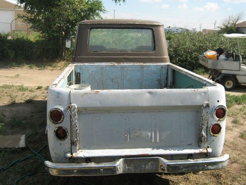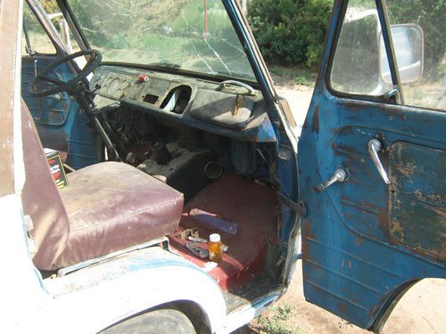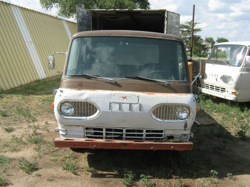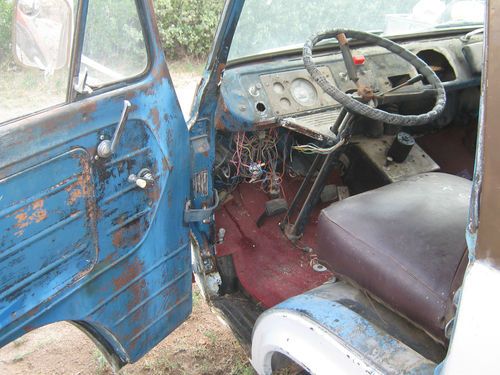 This is a rare 1961 Ford Econoline pickup. All the body is original and there is no rust. The truck is equipped with a later model 250 cu in 6 cylinder engine and a 3 speed manual transmission on a column shift. This vehicle has been in storage for many years, and that is what has helped preserve the quality of this truck. Whoever painted it put the paint on good & thick, and that also helped preserve the truck. These vehicles, fixed up and road worthy, are a lot of fun. They are an excellent conversation piece, easy to get in and out of for any age, and there is a lot of capacity in the back for hauling. There are not many of these left, and this one is a keeper. A little gas and a good battery, and it runs. You can work on it as you drive it.