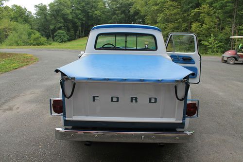 Up for auction, a custom one of kind 1966 Ford F-100 Stepside Pickup Truck. Frame Off Restoration in 2007.350 Chevrolet Power Plant produces 325 HP with lots of chrome and Holley,Crane,Edlebrock, Moroso components that runs like a top. Auto Transmission with shift kit, Power Steering and Brakes, Ice Cold AC, Pioneeer AM/FM CD with remote, Haneline gauges, custom interior, custom tonneau cover, pop up sunroof. This truck has over $ 25K invested but the reserve is less than half of that. Priced to move as I have way to many toys in my garage .Available for inspections and test drive, please contact me via e-bay email.